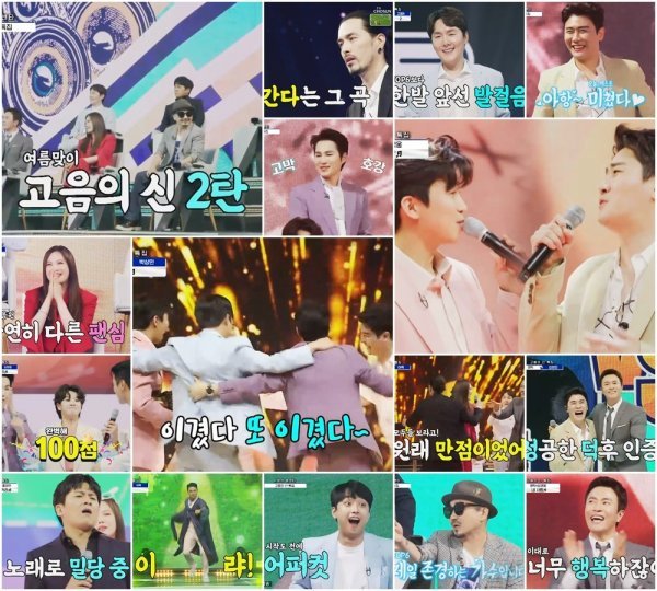 먼저 2000년대 노래방 차트를 올킬한 가수 고유진이 ‘Endless’를 부르며 등장, 시작부터 대동단결 무대를 꾸몄고, 전(前) 노라조 현(現) 이혁밴드의 이혁이 ‘형’으로 범접 불가 고음 세계를 펼쳐 보였다. ‘가요계 원조 돌리도’ 김현정이 ‘멍’으로 일동 ‘돌리도 춤’에 흠뻑 빠지게 만들었으며, ‘한국의 리키 마틴’ 홍경민이 ‘흔들린 우정’을 선보이며 ‘어느 손이 오른손이게 춤’으로 반갑게 무대 위에 올랐다. 뱀파이어급 외모와 목소리로 화려하게 모습을 드러낸 김정민은 ‘슬픈 언약식’으로 모두를 기립하게 했고, ‘남자 중의 남자’ 박상민이 ‘하나의 사랑’으로 카리스마 넘치는 무대를 완성했다. “TOP6 이제 내려올 때가 됐다”라던 박상민은 고음6 멤버로부터 공감을 얻지 못하자 “제가 제일 존경하는 가수가 TOP6”라고 금세 말을 바꿔 큰 웃음을 안겼다. 특히 김정민의 오랜 찐 팬임을 밝힌 영탁은 감격의 포옹에 기절할 듯 큰 기쁨을 드러내 훈훈함을 선사했다.