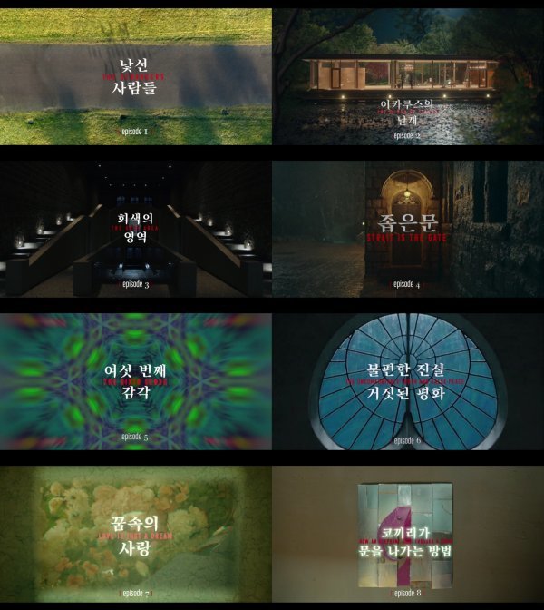 또한 8회로 반환점을 돈 지금 기억에 남았던 부제가 있었냐는 물음에는 “실제로 좁은 문을 통과하듯 글자가 다가오는 4회의 부제인 ‘좁은 문’과 효원가의 엉망진창 요지경 같은 모습과 희수의 혼란을 만화경으로 형상화한 5회의 ‘여섯 번째 감각’ 그리고 정서현의 고민하는 심리가 색색의 창문으로 변하다 나타나는 6회의 ‘불편한 진실, 거짓된 평화’ 등이 개인적으로 기억에 남는다”고 답했다. “마지막 회 부제까지 관심을 가지고 즐겁게 시청해주시기를 바란다”고 덧붙여 또 어떤 부제가 연출될지 기대감을 높이고 있다.