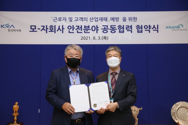한국마사회(회장 김우남)와 자회사인 한국마사회 시설관리㈜(대표이사 박상민)는 산업 재해 예방·감축과 안전 중심의 기업문화 조성을 위한 모-자회사 안전분야 공동협력 협약을 3일 체결했다. 이번 업무 협약은 기관이 보유한 안전 역량과 자원을 적극 활용해 자회사와 상호협력 체계를 구축해 산업 재해 예방과 안전문화 조성을 위한 취지에서 시행됐다. 협약서에는 ▲안전 환경 조성 ▲안전교육 ▲시설물 점검 ▲안전문화 캠페인 등 안전수준 협력분야에서 모-자회사 간의 기술지원 및 협력체계 구축을 위한 내용이 담겼다.