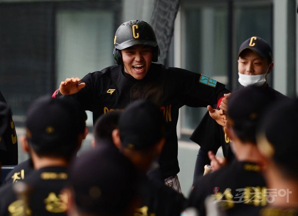 경기 후 만난 강산은 “포수는 유일하게 장비를 차고 수비하는 포지션이다. 특별한 자리라고 생각해 힘든 걸 감안하고 전향에 도전했다”며 “포수 경력은 짧지만 프로에 입단해 팀에 필요한 선수가 되고 싶다”는 소망을 드러냈다. 이어 “롤 모델은 김재성(LG 트윈스) 선배다. 영상을 보면서 프레이밍을 많이 배우고 있다”고 덧붙였다.