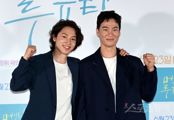 7일 서울 광진구 롯데시네마 건대입구점에서 열린 영화 ‘메이드 인 루프탑’ 언론시사회에 참석한 정휘와 이홍내가 포즈를 취하고 있다.