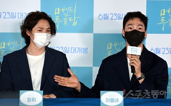 7일 서울 광진구 롯데시네마 건대입구점에서 열린 영화 ‘메이드 인 루프탑’ 언론시사회에 참석한 이홍내가 함께 출연한 정휘에 대해 이야기하고 있다.