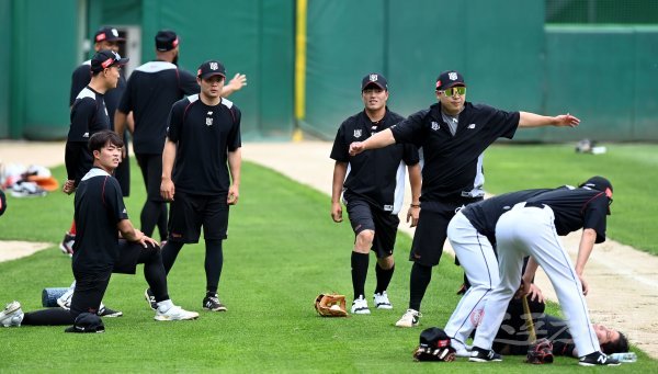 경기 전 kt 선수들이 훈련을 하고 있다.