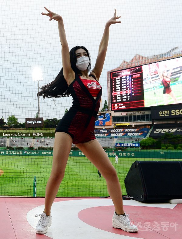 SSG 치어리더가 화려한 공연을 선보이고 있다.