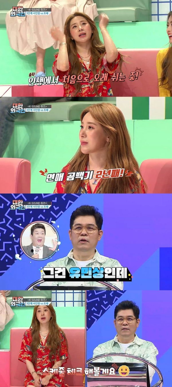 이날 MC 김용만은 오랜만에 모습을 보인 서인영에게 “요즘 연애 안 하냐”며 근황을 묻자 서인영은 “인생 처음으로 연애를 오래 쉬고 있다. 연애 공백기가 2년 정도 됐다”라며 솔직하게 털어놨다.