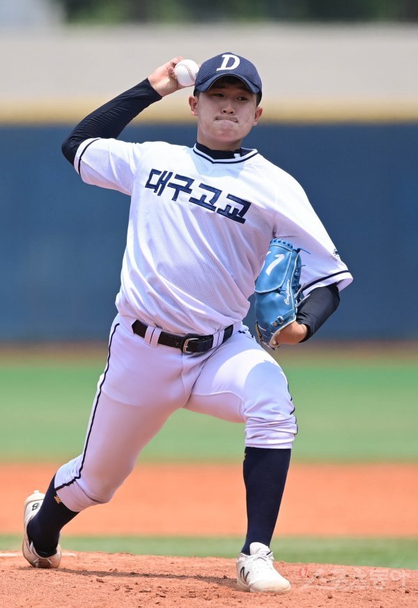 9일 서울 목동야구장에서 ‘제75회 황금사자기 전국고교야구대회 겸 주말리그 왕중왕전’ 16강 백송고와 대구고의 경기가 열렸다. 선발 투수로 마운드에 오른 대구고 이재명이 역투하고 있다.