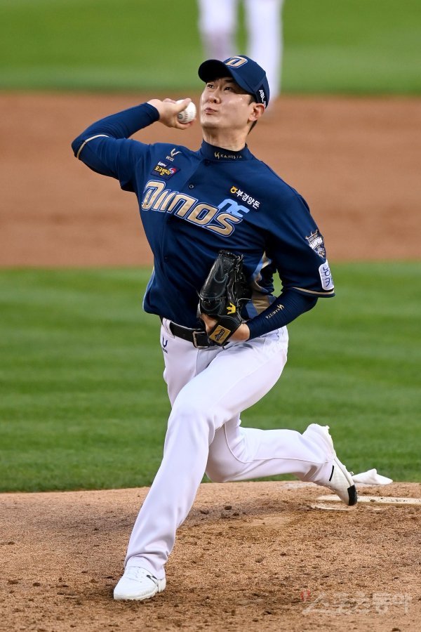 1회초 교체 등판한 NC 최금강이 역투하고 있다.