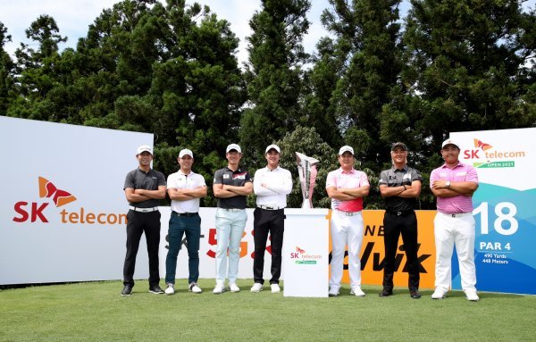 2021시즌 한국프로골프(KPGA) 코리안투어 6번째 대회 ‘SK telecom OPEN 2021’(총상금 12억 원·우승상금 2억5000만 원)’의 개막을 하루 앞둔 10일 대회장인 제주 서귀포에 위치한 핀크스GC(파71)에서는 ‘특별한 포토콜’이 진행됐다.