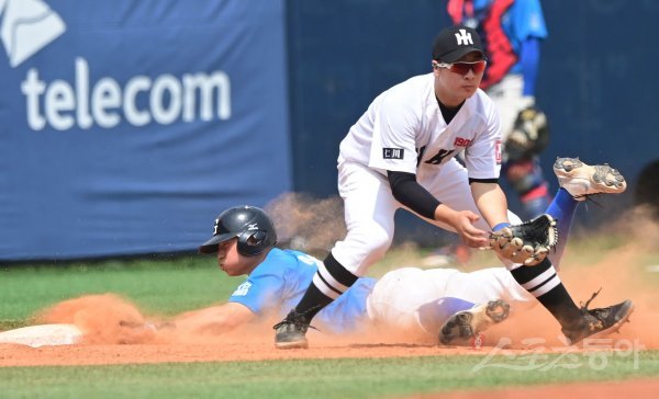 10일 서울 목동야구장에서 ‘제75회 황금사자기 전국고교야구대회 겸 주말리그 왕중왕전’ 8강전 인천고와 강릉고의 경기가 열렸다. 2회말 1사 1루 강릉고 1번 김영후 타석 때 1루주자 허인재가 견제구가 빠진 틈타 3루까지 파고들어 세이프 되고 있다.