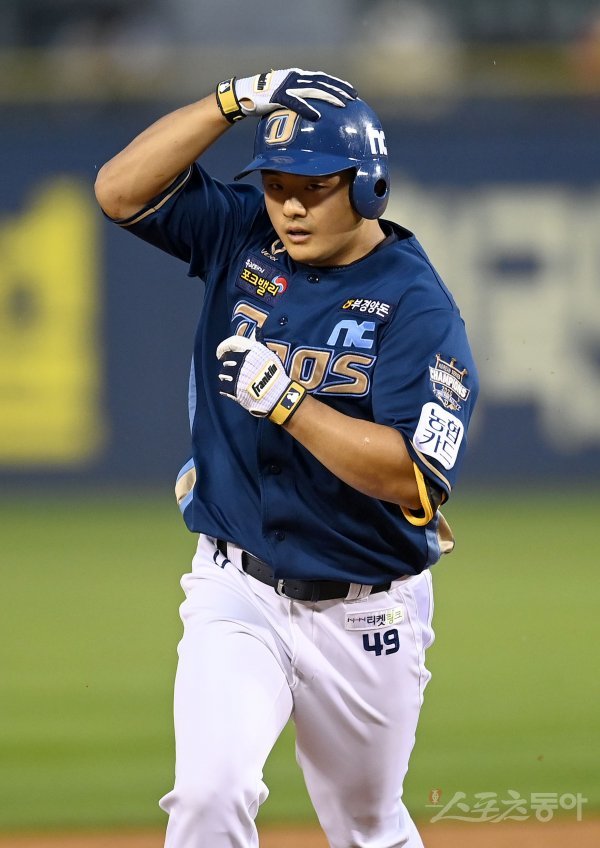 4회초 2사 1루 NC 강진성이 좌월 투런 홈런을 날리린 후 그라운드를 돌고 있다.