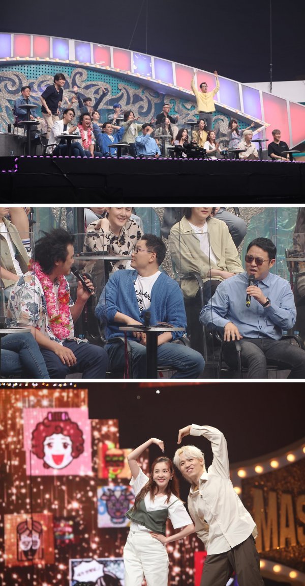 또, 복면가왕의 ‘고막커플’ 산다라박♥이주혁이 무대에서 깜찍한 커플댄스를 선보인다. 그들은 복면가수의 개인기 무대에 깜짝 지원사격을 나서며 함께 댄스 호흡을 맞추는데, 댄스에 서툰(?) 이주혁을 위해 함께 발 맞춰주는 산다라박의 모습에 판정단들이 박수를 보내주기도 한다는 후문. 과연 ‘춤 잘 추는 예쁜 누나’ 산다라박과 ‘노래 잘하는 귀여운 연하남’ 이주혁의 환상케미는 어떤 모습일지 관심이 집중된다.