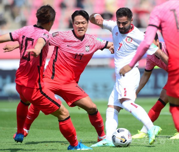 13일 고양종합운동장에서 열린 하나은행 후원 ‘2022 카타르 월드컵’ 아시아 지역 2차 예선 한국과 레바논의 경기에서 레바논 사드가 전반전에 선제골을 성공시키고 있다.