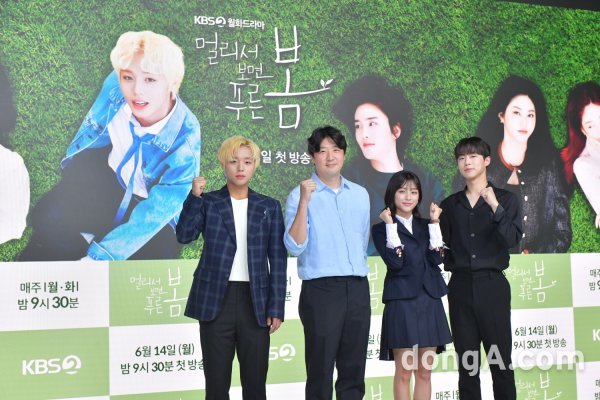 박지훈, 김정현 감독, 강민아, 배인혁(왼쪽부터)이 14일 오후 2시 진행된 KBS2 새 드라마 ‘멀리서 보면 푸른 봄’ 온라인 제작발표회에 참석해 포즈를 취하고 있다.