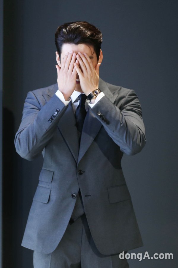 이날 김우빈은 건강한 모습으로 모델 비주얼을 뽐냈다.