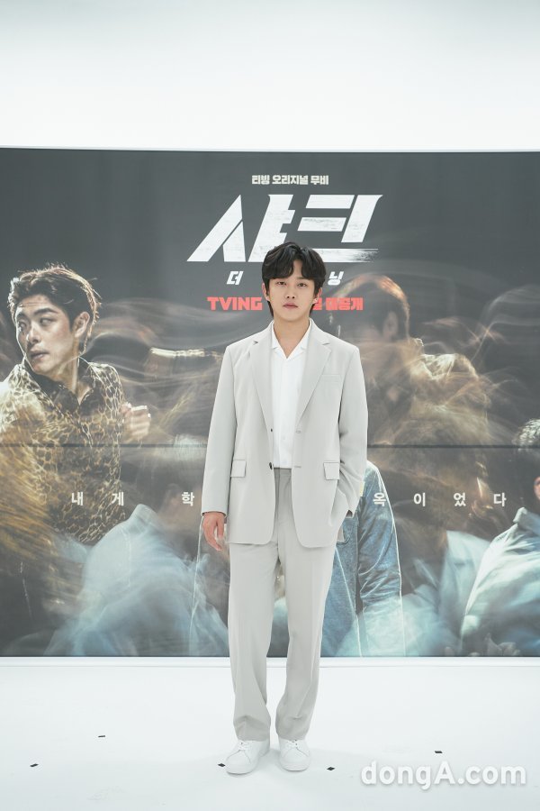 배우 김민석이 15일 오후 티빙 오리지널 무비 \'샤크,: 더 비기닝\' 온라인 제작보고회에 참석해 포즈를 취하고 있다.