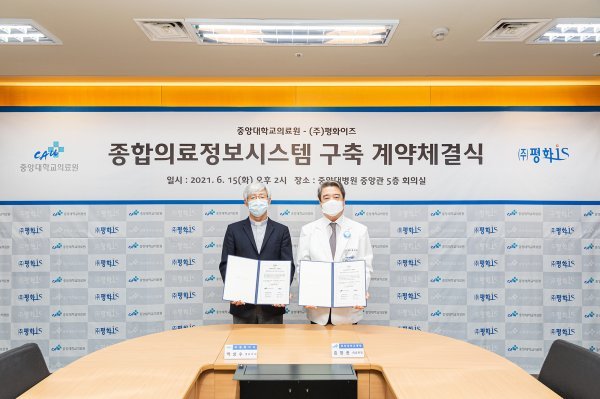 중앙대학교의료원(의료원장 홍창권)은 15일 의료IT 전문기업 평화이즈와 차세대 종합의료정보시스템 구축 계약을 체결했다. 새 종합의료정보시스템은 1500병상 규모의 중앙대의료원 산하의 두 병원, 중앙대학교병원과 광명병원을 하나의 시스템으로 통합 운영할 수 있다. 진료 정보를 원활히 공유하여 진료, 교육, 연구 면에서 큰 발전을 기대할 수 있다.
