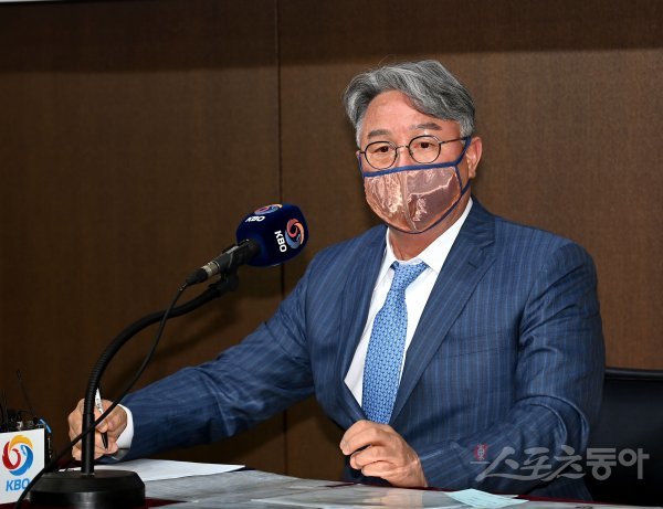 16일 서울 도곡동 야구회관에서 열린 ‘2020 도쿄올림픽’ 야구 국가대표팀 명단 발표 행사에 참석한 김경문 야구국가대표팀 감독이 취재진의 질문에 답하고 있다.