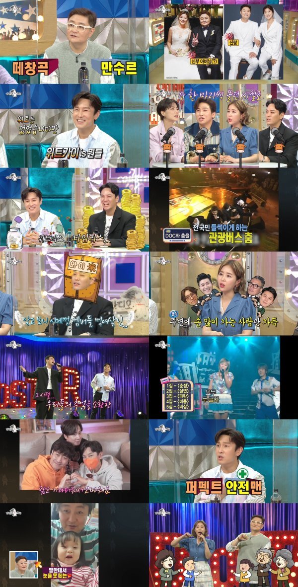 이어 신지는 정재용과 함께 ‘코용태’를 결성해 ‘DOC와 춤을..’ 무대를 재현했다. 신지의 탄탄한 라이브와 정재용의 랩으로 시작해 남녀노소 어깨춤을 부르는 관광버스 춤으로 대동단결, MC들까지 들썩이는 흥 넘치는 추억 무대를 선사했다.