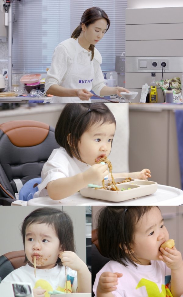 아이들이 잘 먹을지 긴장한 가운데 아윤이와 친구들은 엄마 박정아가 뚝딱 완성한 두 가지 요리를 폭풍 흡입하기 시작했다고 한다. 특히 눈길을 끈 것은 25개월 먹방 천재 아윤이의 압도적인 먹방 능력. 자장면을 흡입하며 호로록 면치기를 하는 것은 물론 이내 그릇의 바닥이 드러나자 급하게 “고기 더 줘요”, “더 주세요”라며 귀여운 리필 요청까지 한 것이다.