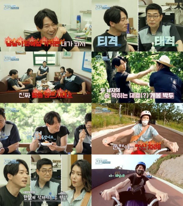 한편, 마을 일손 돕기의 일환으로 감나무 잡초 제거에 나선 김준현은 액션 연기의 장인 장혁을 도발하며 ‘절권도’로 도전장을 내미는데. 김준현은 자신을 ‘흑석동 물주먹’이라 소개하며 “때릴 때 첨벙첨벙 소리가 나서 물주먹”이라며 너스레를 떨었고, 이에 장혁은 그간 쌓아온 내공을 발휘해 절권도 실력을 뽐내 시청자들의 감탄을 자아냈다.