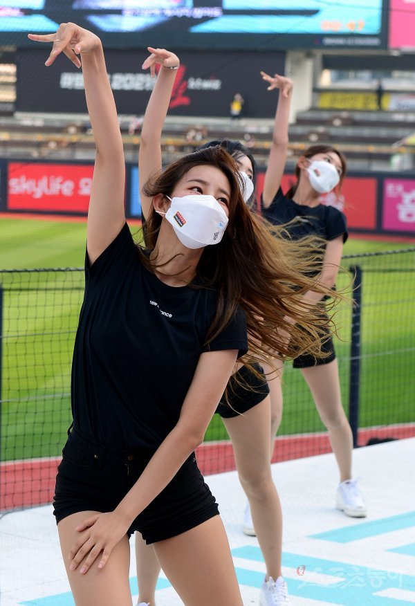 kt 치어리더가 화려한 공연을 선보이고 있다.