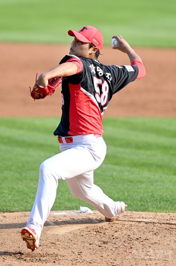 선발 투수로 등판한 KIA 차명진이 역투하고 있다.