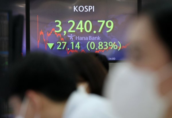 안정적으로 배당금을 챙길 수 있는 중간배당에 대한 주식 투자자들의 관심이 늘고 있다. 중간배당금을 받으려면 28일까지 주식을 매수해야 한다. 코스피 3240.79로 장을 마친 21일 오후 서울 중구 하나은행 주식 전광판. 뉴시스