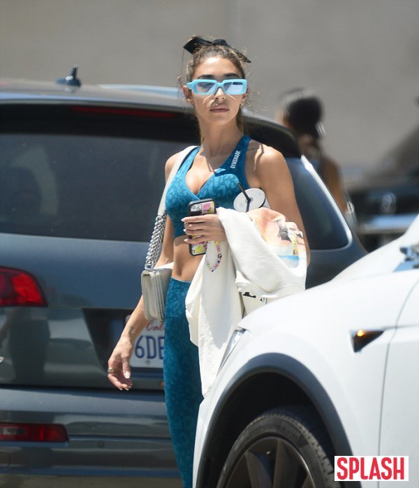21일(현지시간) 미국 로스앤젤레스(LA)에 한 체육관에서 포착된 샨텔 제프리즈는 리본으로 묶은 포니테일 헤어스타일에 청록색 브라탑과 레깅스를 매치하여 탄력 넘치는 몸매를 드러냈다.