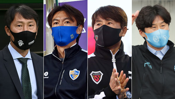 전북 김상식 감독-울산 홍명보 감독-포항 김기동 감독-대구 이병근 감독(왼쪽부터). 사진제공 | 스포츠동아DB, 한국프로축구연맹