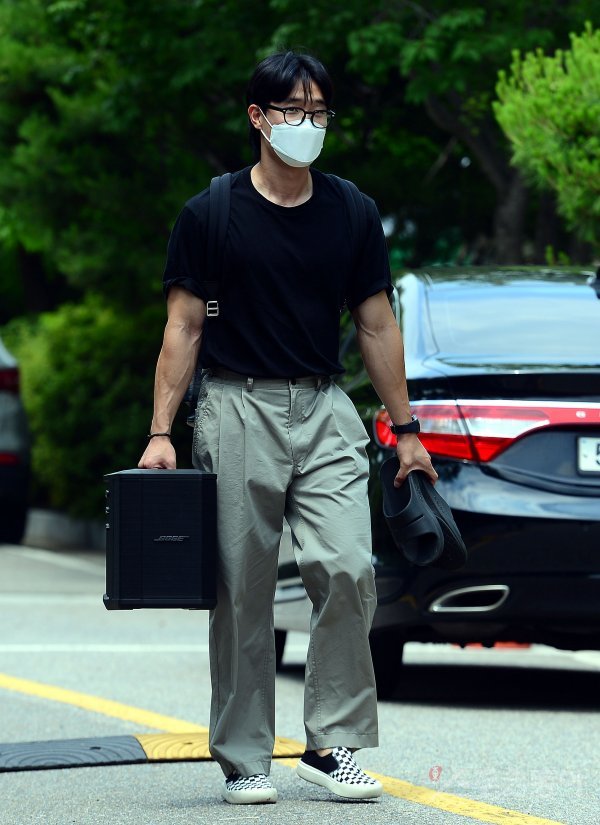 올림픽축구대표팀 이유현이 NFC로 들어서고 있다.