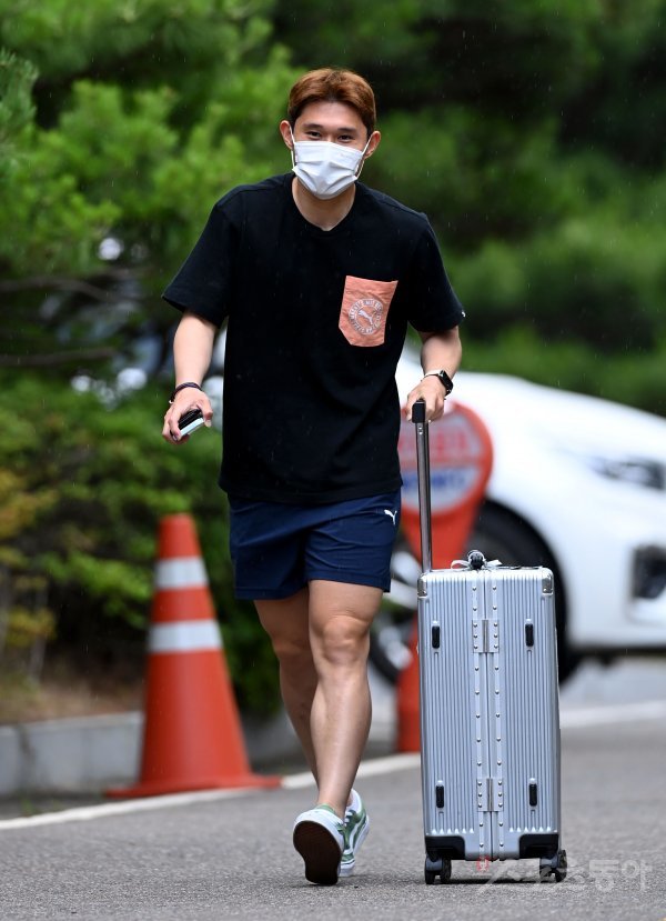 올림픽축구대표팀 이동경이 NFC로 들어서고 있다.