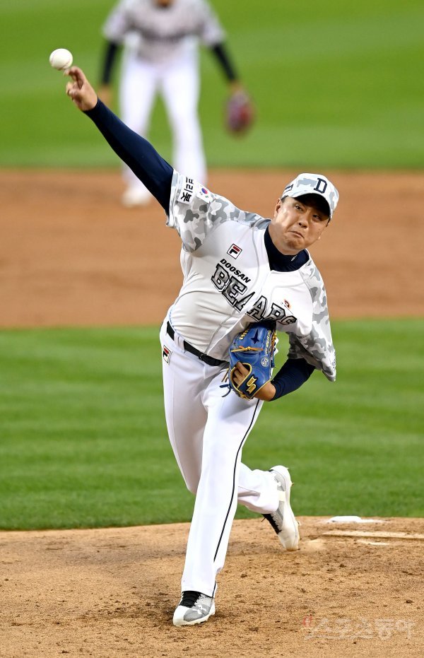 22일 서울 잠실야구장에서 ‘2021 신한은행 SOL KBO리그’ 키움 히어로즈와 두산 베어스 경기가 열렸다. 선발 투수로 등판한 두산 이영하가 역투하고 있다.