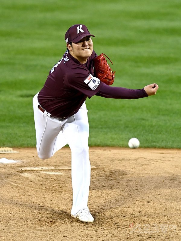 22일 서울 잠실야구장에서 ‘2021 신한은행 SOL KBO리그’ 키움 히어로즈와 두산 베어스 경기가 열렸다. 선발 투수로 등판한 키움 한현희가 역투하고 있다.