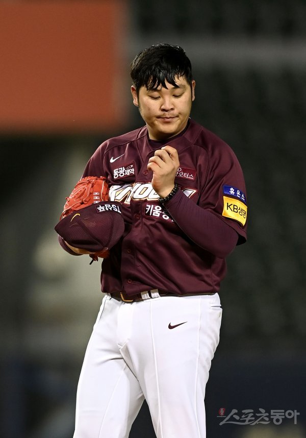 선발 투수로 등판한 키움 한현희가 4회말 무사 1루 상황에서 교체되고 있다.