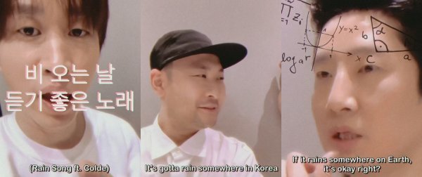 멤버들은 “6월 29일 오후 6시 에픽하이가 신곡을 낸다. ‘비 오는 날 듣기 좋은 노래’. 그런데 그날 비가 안 오면 어떡하지? 비 올 때 꼭 들어야 하는데 발매를 취소해야 하나? 전국 어디든 한 방울이라도 내려야 한다”라며 음원 공개 당일 기상 상황에 따른 신곡 발매 취소 가능성을 언급했다.