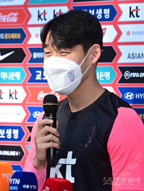 23일 경기도 파주 축구대표팀트레이닝센터(NFC)에서 2020 도쿄올림픽 2차 소집훈련에서 올림픽 축구대표팀 송민규가 훈련에 앞서 인터뷰를 하고 있다.