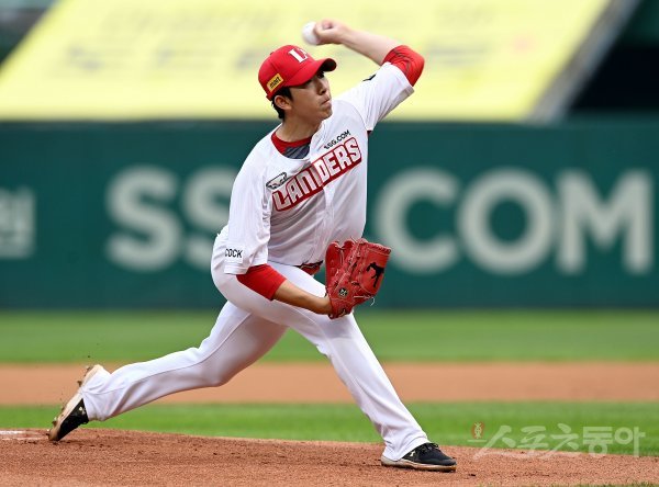 SSG 선발투수 오원석이 힘차게 볼을 던지고 있다.