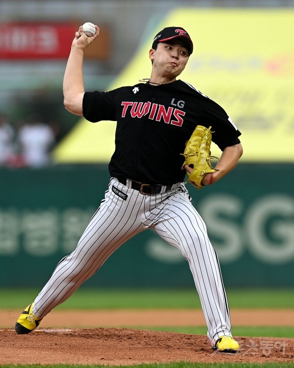 LG 선발투수 이민호가 힘차게 볼을 던지고 있다.