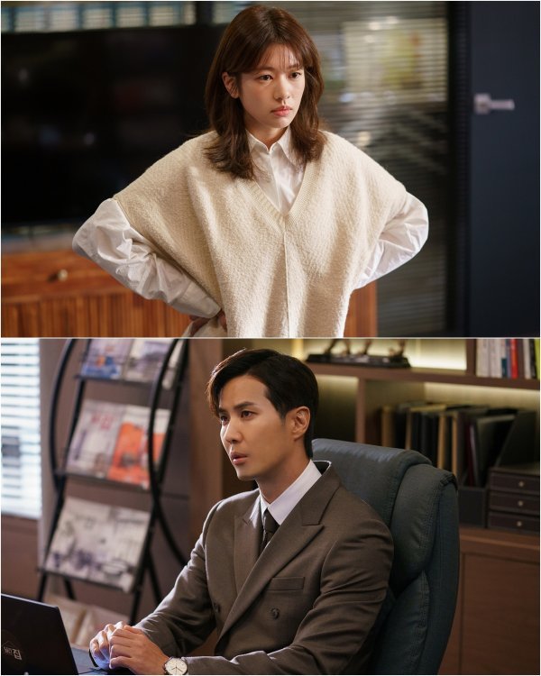 JTBC 수목드라마 ‘월간 집’(극본 명수현 연출 이창민)의 지난 방송에서 “대표님 저 좋아하세요?”라는 영원(정소민)의 취중 질문에 입맞춤으로 화답한 자성(김지석). ‘대빵이들’ 로맨스의 시작을 알리며 설레는 밤을 장식한 두 사람이 24일 본 방송을 앞두고 공개된 스틸 컷에서 한껏 날을 세우고 대치해 궁금증을 증폭시킨다.