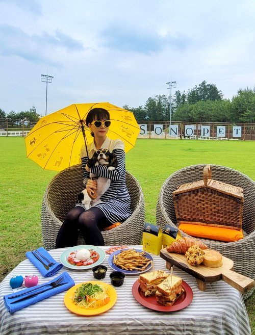 펫팸족이 프라이빗 펫 피크닉 패키지를 즐기고 있다.