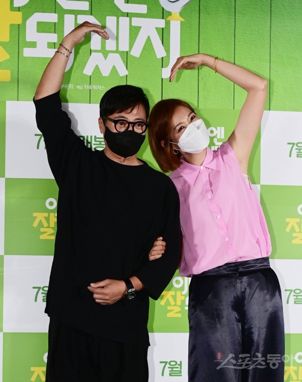 배우 윤다훈과 이선진이 29일 서울 용산구 CGV용산아이파크몰점에서 열린 영화 ‘이번엔 잘 되겠지’ 언론시사회에서 포즈를 취하고 있다.