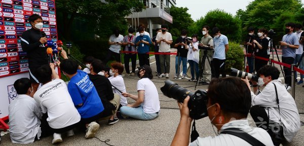 5일 경기도 파주 축구대표팀트레이닝센터(NFC)에서 2020 도쿄올림픽 최종 소집훈련에 앞서 올림픽 축구대표팀 권창훈이 기자회견을 하고 있다.