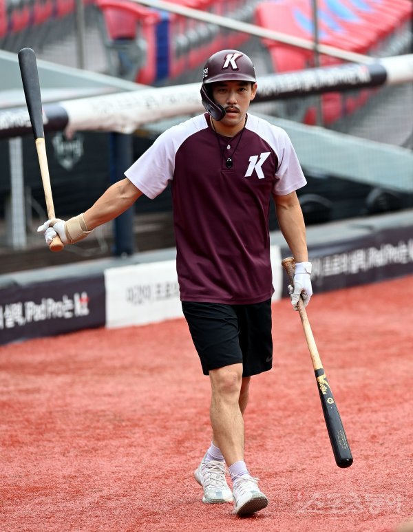 경기 전 키움 이용규가 훈련을 준비하고 있다.