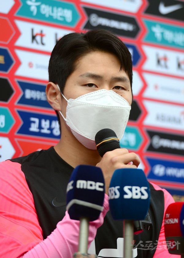 훈련 전 이강인이 인터뷰를 하고 있다.
