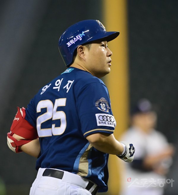 5회초 1사 NC 양의지가 좌월 솔로 홈런을 쳐낸 뒤 그라운드를 돌고 있다.