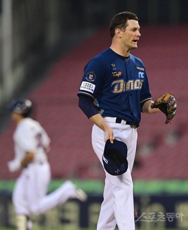 4회말 무사 1루 두산에 투런 홈런을 혀용한 NC 루친스키가 아쉬워하고 있다.