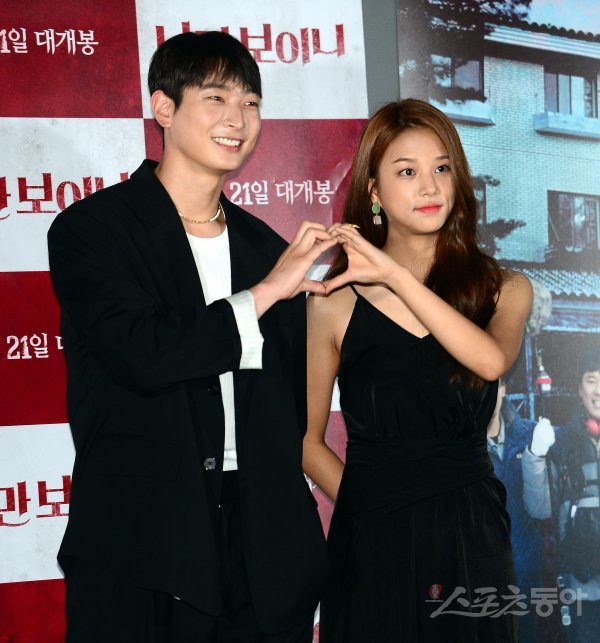 가수 정진운과 솔빈이 7일 오후 서울 광진구 건대 롯데시네마에서 열린 영화 ‘나만 보이니’ 언론 배급시사회에 참석해 포토타임을 갖고 있다.