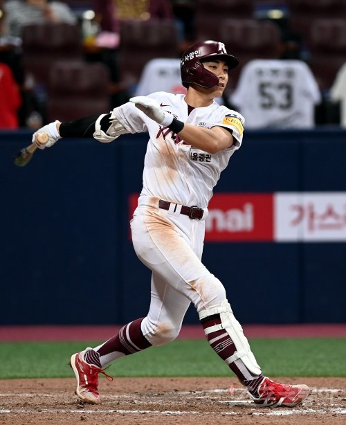 7일 고척 SSG 랜더스전에선 시즌 100번째 안타를 때려내며 KBO리그 역대 78번째로 5년 연속 100안타를 마크했다. ‘전설’ 이승엽(은퇴)과 어깨를 견줄 만한 속도다. 22세 10개월 14일의 나이로 최연소 5년 연속 100안타를 작성한 이승엽에 이어 2위에 해당하는 22세 10개월 17일(2위)이다.
