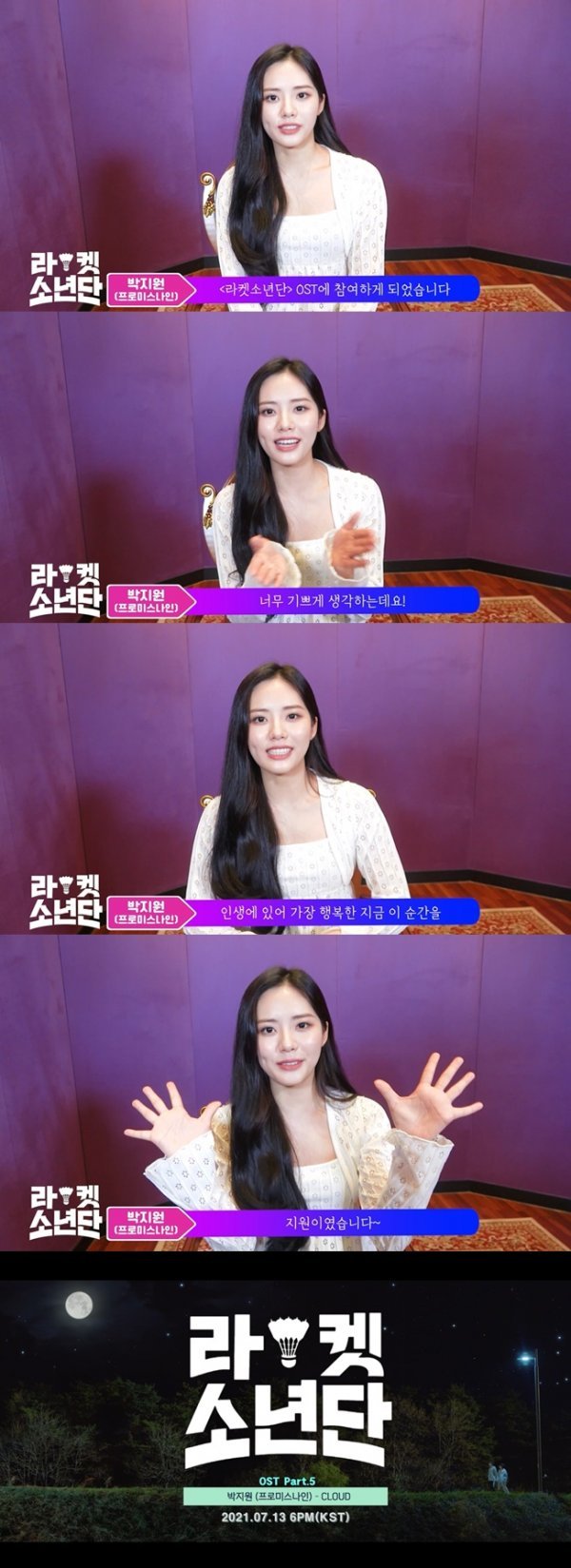 지난 9일, '라켓소년단' OST 유통사 뮤직앤뉴 SNS를 통해 공개된 깜짝 영상을 통해 걸그룹 프로미스나인 박지원이 가창자로 공개돼 화제를 모았다.