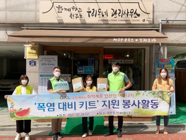 게이밍 공기업 그랜드코리아레저(GKL, 사장 유태열)는 14일 서울 중구 청구동 관내의 취약계층 250여 가구에 아이스팩을 재활용한 얼음주머니와 얼음물 등을 담은 ‘안전한 여름나기 폭염 대비 키트’를 전달했다.